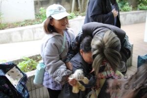 出発前にぎゅ~っとしてもらう姿をパシャリ。