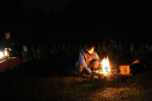 出発前に教頭先生のご挨拶と、無事にキャンプを
