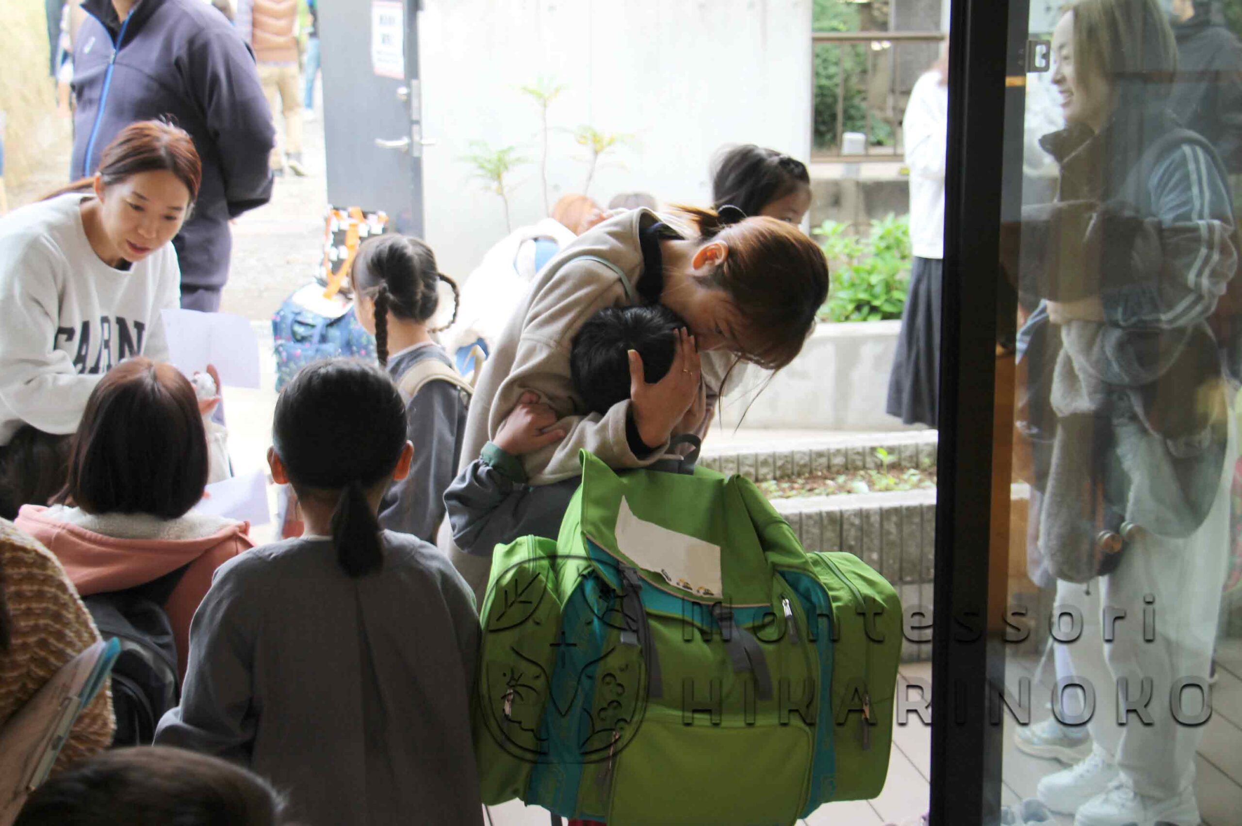 出発前にぎゅ~っとしてもらう姿をパシャリ。