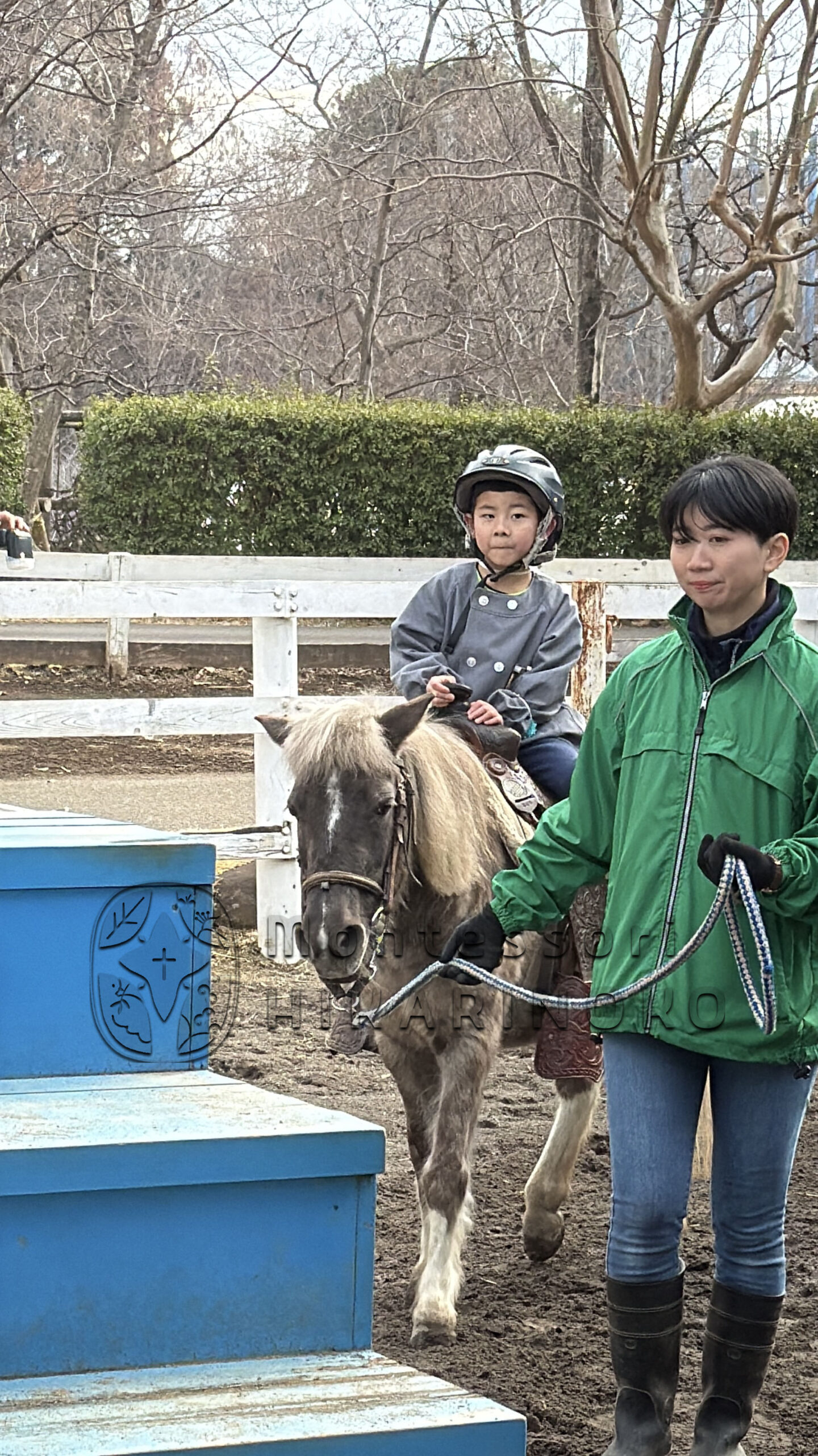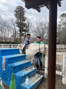 ポニー広場で乗馬中の子ども達のところへ。