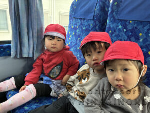 大きなバスに乗れて嬉しそうな子もいて