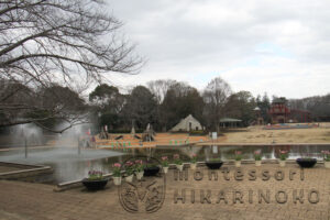開園からずっと曇り空で日差しがなかった広場に