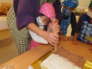 ケーキ作りも既に終盤、さすがに全クラス撮影は難しいなぁと