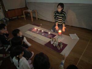 We learned about the setting where Jesus was born and about God’s love through a nativity set and candle lights.